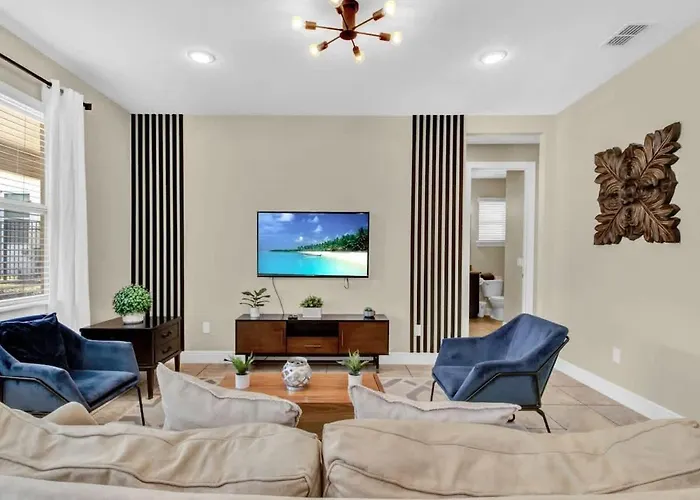 Relaxing 6Br Home W Pool Near Disney Orlando está localizada a 10 minutos de carro de Emerald Island Blvd, dando acesso a vários pontos turísticos próximos.